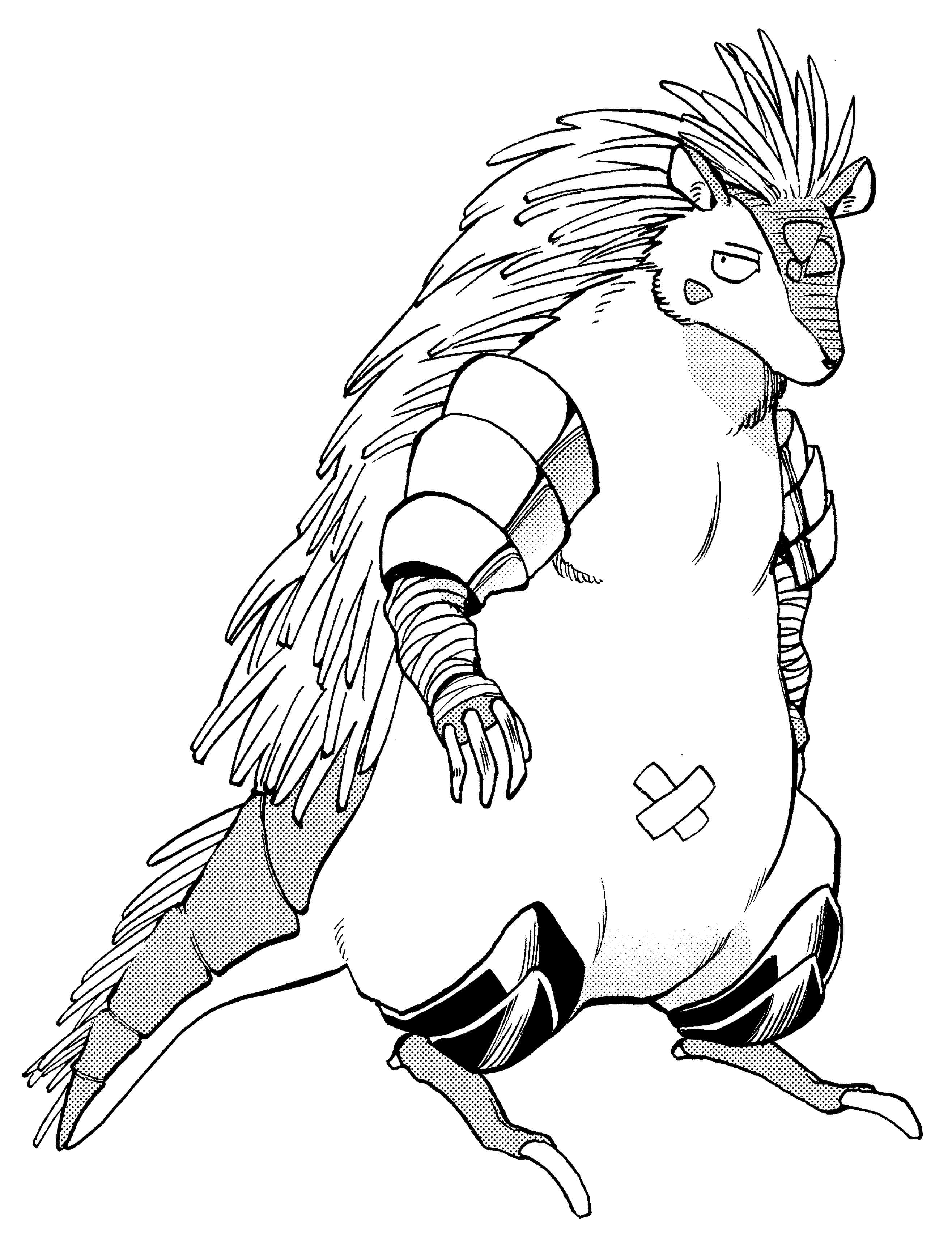 description: 魔獣族の魔物。肉弾戦が得意で、防御力が自慢。背中のトゲを抜くと、何故か付け根の方がとがっているというやさしい仕様。ヤレヤレいいながら周囲のボケに突っ込んであげるせいか、友達が多い。頼まれると断れないタイプ。好物は『怪鳥茶碗蒸し』。