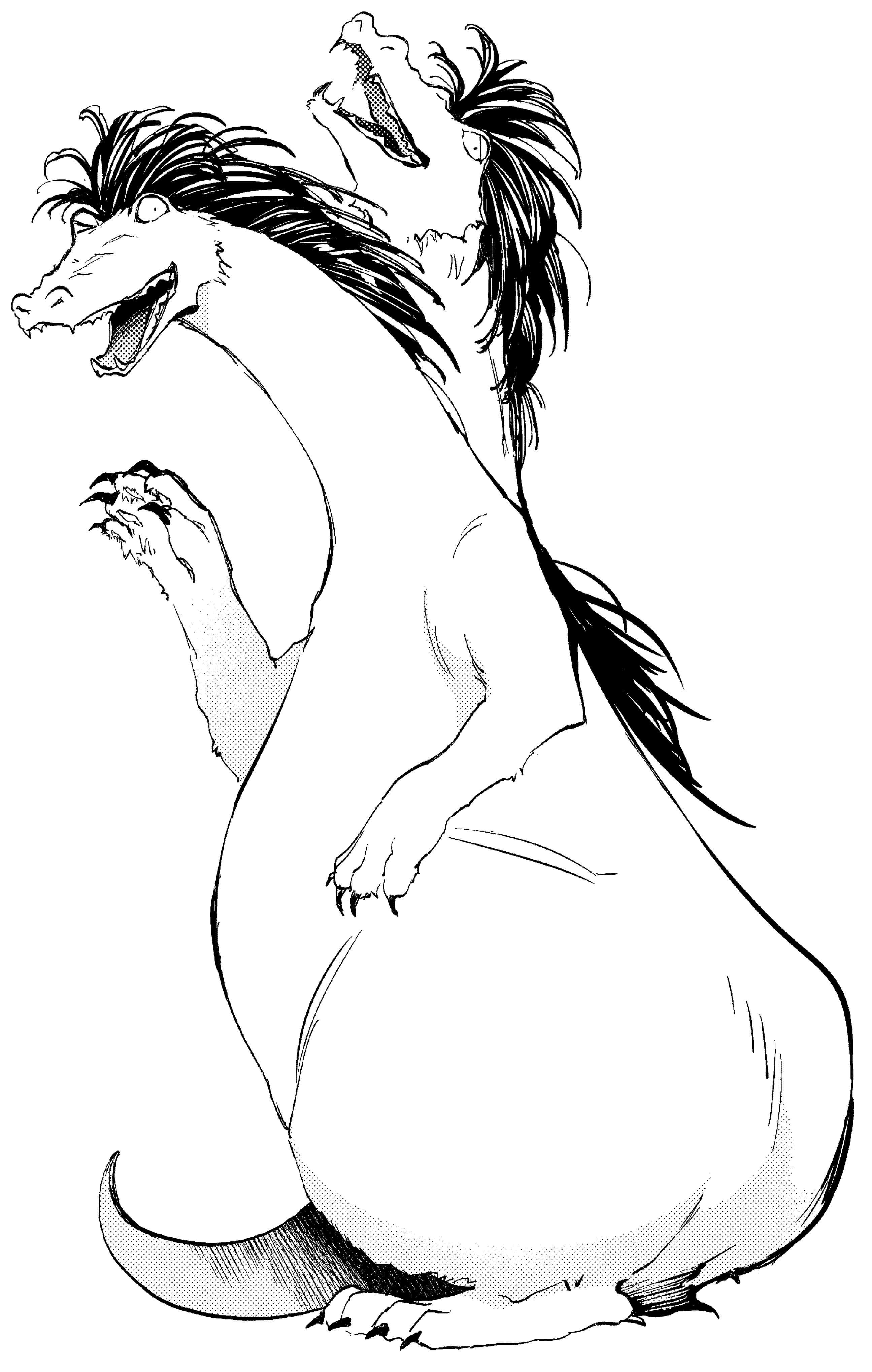 description: ドラゴン族の魔物。ふたくびの頭にはそれぞれ脳があり、しっかり会話も出来るので毎日楽しそうにしているが、二頭の会話を聞いている側はその内容の無さに頭がいたくなる。脳みそパンパカパン仲間のロケットタートルを年5回は爆発させているのだが、基本的に両者とも過去は振り返らないので関係は良好。よかったね。