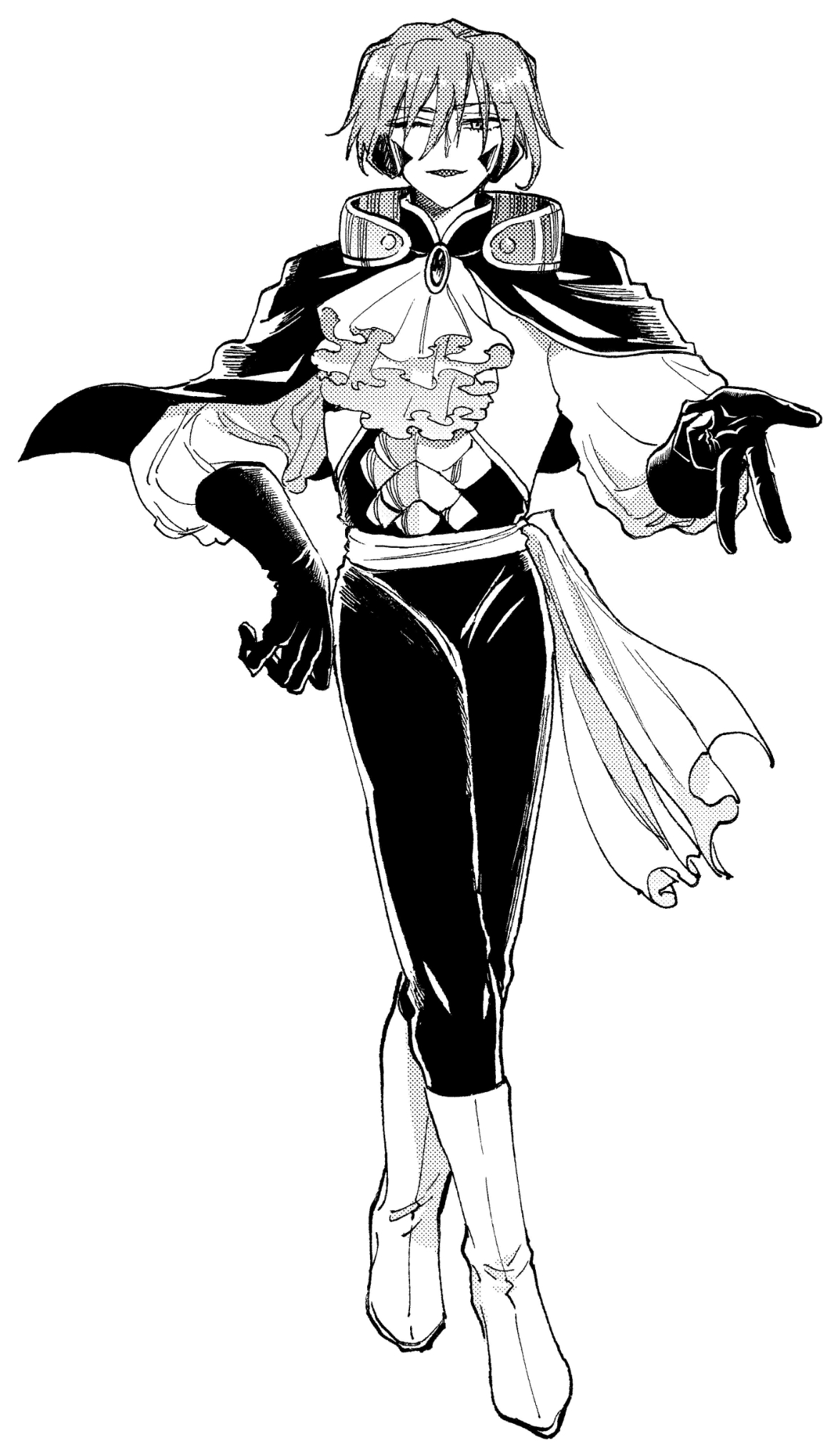 description: 人間界における超有名人。マジックフェンシングの達人として名が知られて以降、文化的な功績やその美貌でも人気を集める大スター。女性人気が特に熱狂的で、余裕のある口調や凛とした振るまいから「カイミーンの輝ける貴公子」とも言われるが正真正銘、女性である。姫曰く「昔ミラクル☆キュートを応援してた時のきもちに似てる」…らしい。